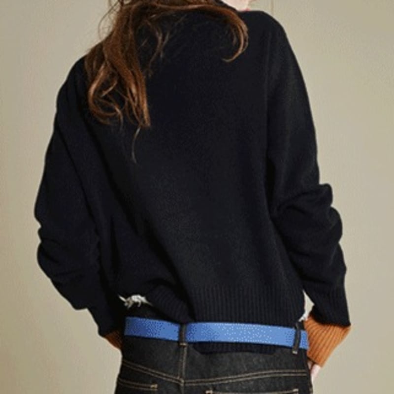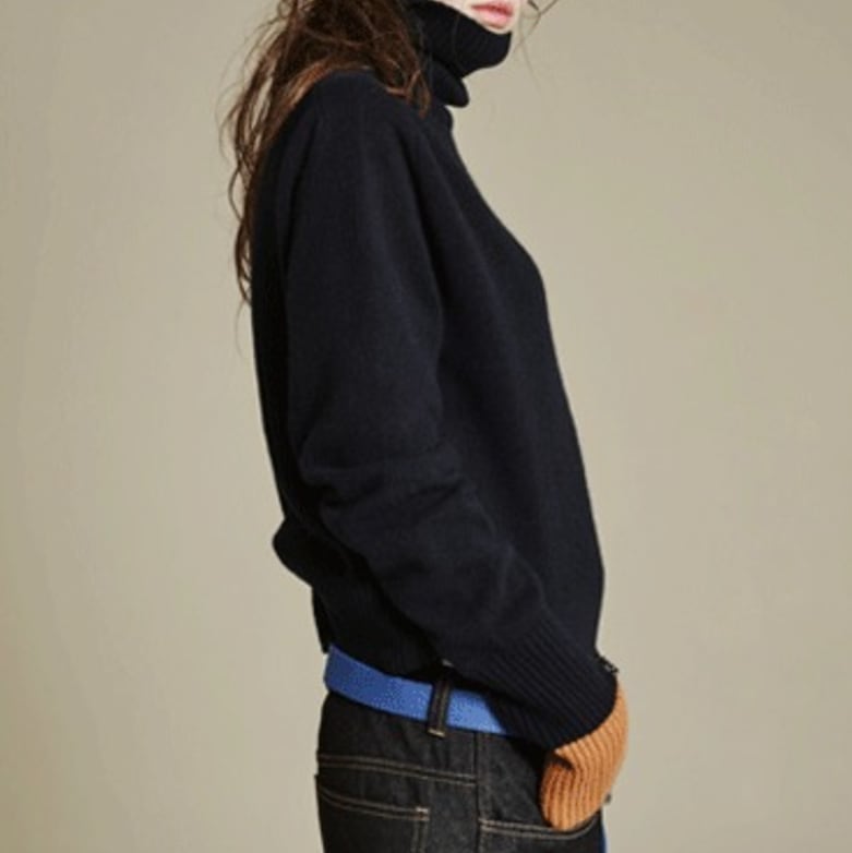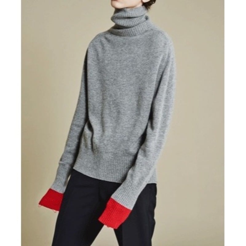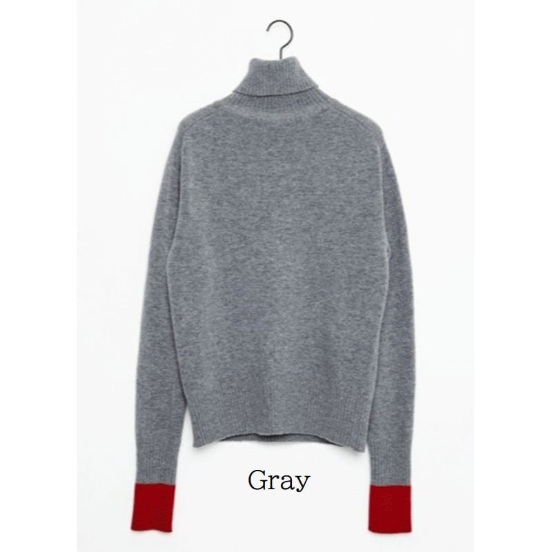 袖口のバイカラーがトレンドライクなタートルネックニット。