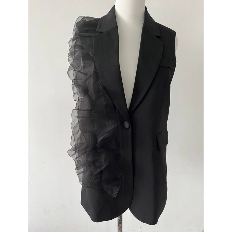 Asymmetrical tulle lace gilet V2019