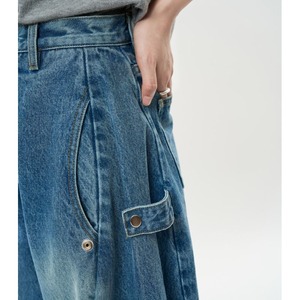 Side hook wide denim pants V2026